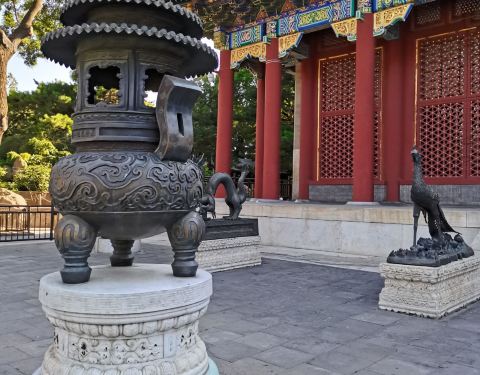 仁寿殿位于颐和园东宫门内,是宫廷区的主要建筑之一,乾隆清漪园时期称“勤政殿”。仁寿殿内吸引人的是一只蹲在石须弥座上的铜铸异兽 ,龙头、狮尾、鹿角、牛蹄、遍体鳞甲,造型离奇怪异,是传说中的瑞兽麒麟。铜...