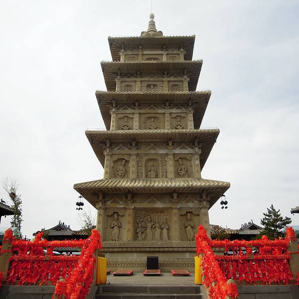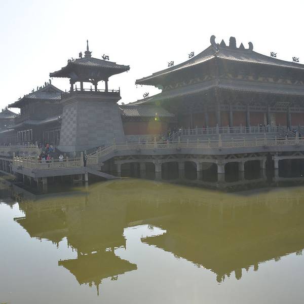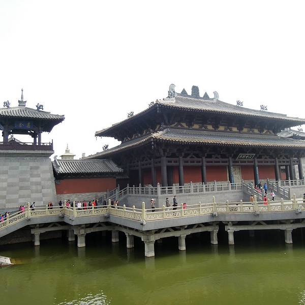 灵岩寺坐落于云冈石窟大景区的湖心岛中央,整个寺院为三进院落,是按照北魏著名地理学家郦道元在《水经注》中的描述而仿建的。