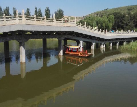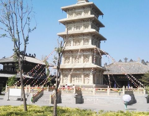 整个寺院为三进院落,除了山门以外,千佛殿和大雄宝殿。走过七孔桥,就可以看到高大的寺院山门云冈灵岩寺坐落于云冈石窟景区内的湖心岛中央,与众不同。走过七孔桥,就可以看到高大的寺院山门。整个寺院为三进院落,除了山门以外,千佛殿和大雄宝殿。穿过灵岩寺就可以到达石窟。