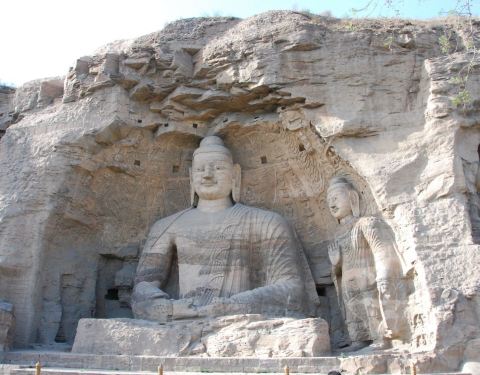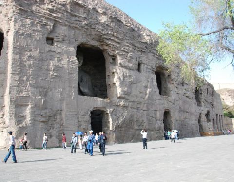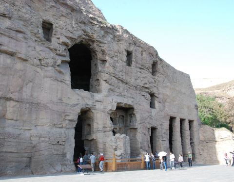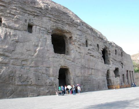 第十六到二十窟是云冈石窟开凿最早的五座洞窟,由北魏著名的高僧昙曜主持开凿,所以称为昙曜五窟第十六到二十窟是云冈石窟开凿最早的五座洞窟,由北魏著名的高僧昙曜主持开凿,所以称为昙曜五窟。5个洞窟都是大像窟、穹窿顶,前立壁开一门一窗。也是云冈石窟的主要看点,很壮观。