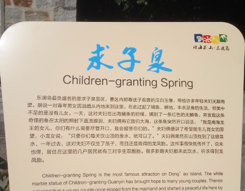 求子泉,顾名思义求子,心诚则灵吧, 不过这里是一个石奇水美,花木葱茏,空气清新的美丽小岛,结婚到这里度蜜月不错
