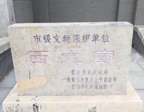 本名天后、妈祖庙,通称西大庙。在营口市辽河大街西段。建于清雍正四年(1726年),1929年重修。庙坐北朝南,四周建有围墙,前有山门、钟鼓楼和两座角门,以海神娘娘殿为主体,配以龙王殿、药王殿、观音阁等建筑...