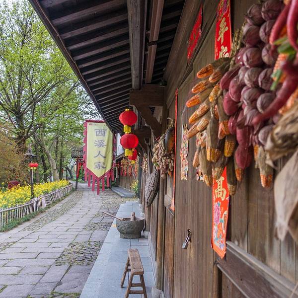 如果说西溪湿地是影响之中的自然胜景的话,那就完全错误了。其实在这看似很生态的西溪湿地里面却有很多数不清说不完的历史故事与人文记录。在西溪除了河渚街之外,还有隐藏在西溪湿地里面的一处西溪人家就是整个西溪湿地最有人文代表的部分,西溪人家才是西溪湿地最核心也是最关键的部分。有了人的劳作才成就了现在的西溪湿地,所以人的活动才是西溪湿地最根本的因素。 西溪人家把最原先在西溪这里生活的习俗、历史与人文通过古迹修复的方式展示在人民眼前,通过这些“古迹”的修复以及以前人用过的生产工具来阐述古代西溪人家是如何劳动生产、居家生活的。 西溪人家主要分为丝绸纺织手工业部分、生活起居部分、婚礼部分、饮食制作部分以及农具生产部分,整个西溪人家的趣味性、娱乐性与知识性非常独特到位,是西溪湿地景区里面不可多得的人文欣赏基地,很值得推荐大家来看一看。因为西溪人家这部分是在西溪湿地景区最核心的位置,所以购买了西溪湿地80元的大门票后进入景区就能到西溪人家来游玩了,不再单独收西溪人家的门票了。杭州西溪湿地在一般人的心目中可能就是自然风光了,其实不然。西溪人家就是代表了古代西溪湿地最有人文情怀与氛围的地方了,所以想要了解西溪的人文历史那就来西溪人家走一走看一看吧。在西溪人家门口欣赏到美丽的花儿,春色满园皆喜气的氛围让人觉得很有春意盎然的气息,山野君很喜欢这样的感觉。西溪人家门口的野花儿代表了西溪湿地最有农家生活的气息,这样的感觉真的很有江南鱼米之乡的风情。不知道你们是不是跟山野君一样喜欢这样的风情呢?如果说西溪湿地是印象之中的自然胜景的话,那就完全错误了。其实在这看似很生态的西溪湿地里面却有很多数不清说不完的历史故事与人文记录。在西溪除了河渚街之外,还有隐藏在西溪湿地里面的一处西溪人家就是整个西溪湿地最有人文代表的部分,西溪人家才是西溪湿地最核心也是最关键的部分。有了人的劳作才成就了现在的西溪湿地,所以人的活动才是西溪湿地最根本的因素。西溪人家把最原先在西溪这里生活的习俗、历史与人文通过古迹修复的方式展示在人民眼前,通过这些“古迹”的修复以及以前人用过的生产工具来阐述古代西溪人家是如何劳动生产、居家生活的。为了纪念丝绸给西溪人家带来的财富,所以在西溪人家的中间位置设了一个这样的雕塑,这个雕塑是蚕宝宝的人像化的了,非常可爱的雕塑。这里就是专门介绍西溪这个地方古代人的生活的方方面面的展览厅,现在就跟着山野君一起进去看看吧。杭州古代就是丝绸生产基地,所以西溪湿地哪能少得了古代西溪人家丝绸为主的手工业的展览厅呢,去见识一下杭州的丝绸手工业文化吧。西溪人家主要分为丝绸纺织手工业部分、生活起居部分、婚礼部分、饮食制作部分以及农具生产部分,整个西溪人家的趣味性、娱乐性以及知识性非常独特到位,是西溪湿地景区里面不可多得的人文游览之地。登上二楼可以看到古代人的楼房格局了是什么样的了,这才是真正古时候西溪这个地方农村人居住的环境。西溪人家主要分为丝绸纺织手工业部分、生活起居部分、婚礼部分、饮食制作部分以及农具生产部分,整个西溪人家的趣味性、娱乐性与知识性非常独特到位,这里展示的是婚礼与婚俗方面的了。如果大家想要体验古代杭州婚嫁的感觉,可以自己尝试一下哦,这里可以免费体验的呢。是不是感觉很新鲜呢?西溪人家把最原先在西溪这里生活的习俗、历史与人文通过古迹修复的方式展示在人民眼前,通过这些“古迹”的修复以及以前人用过的生产工具来阐述古代西溪人家是如何劳动生产、居家生活的。西溪湿地人家的每个地方都是那么的漂亮,不仅有优美的自然风光还有悠久的西溪人家农耕历史文化底蕴。因为西溪人家这部分是在西溪湿地景区最核心的位置,所以购买了西溪湿地80元的大门票后进入景区就能到西溪人家来游玩了,不再单独收西溪人家的门票了。来杭州一般都会去西湖打卡,不过在杭州除了娇美的西湖风光之外,还有眼前这美的如仙境般的西溪湿地。西溪湿地是杭州很有田园风光与人文历史的一处绝美的名胜区。完善的植被系统,宜人的生态环境成为春季到此游览的好选择,所以来西溪湿地游春也是非常受欢迎的旅游之选。徒步在西溪人家的田园边都是那么的美丽动人。绝美的自然环境、宜人的空气质量以及发达的经济,杭州因此而获得联合国认可了,并获得中国最佳人居城市、改善人类生活环境城市以及中国高品质生活城市。杭州也成为颇具影响力的天堂般的旅游之城。因此也成为我国热门的旅游城市与代表。