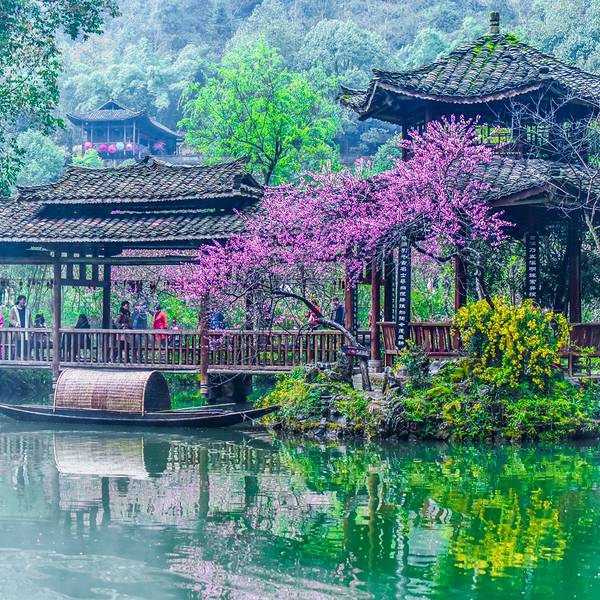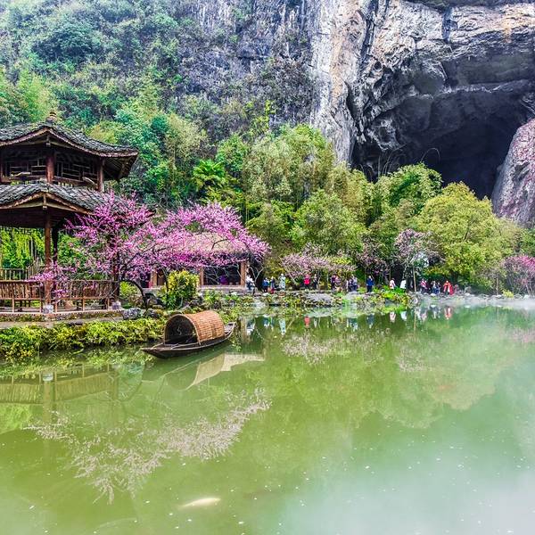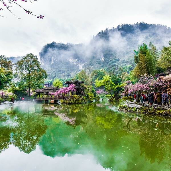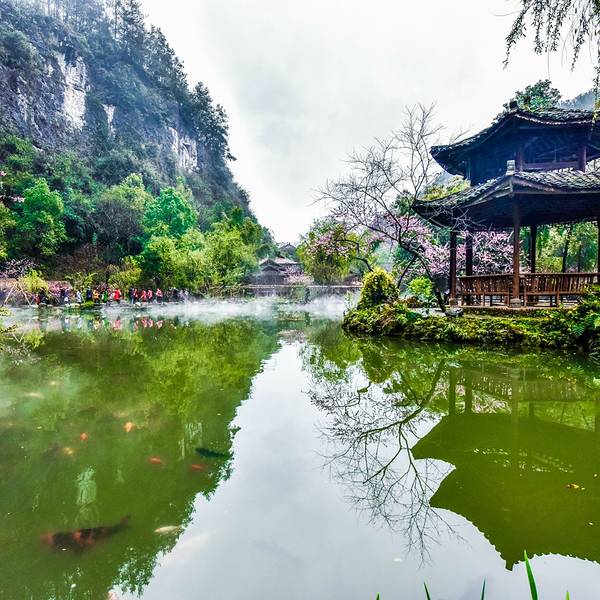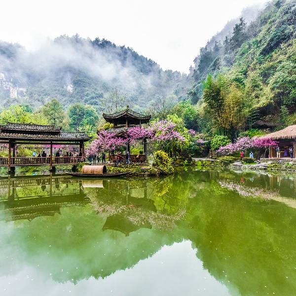 乘坐重庆北——酉阳的火车,下车后可随时乘坐龙潭(火车站)——酉阳的中巴(票价:10.5元),耗时40分钟到达酉阳桃花源,在酉阳下车后也可以乘坐101路公交,在【桃花源广场】下车即可。