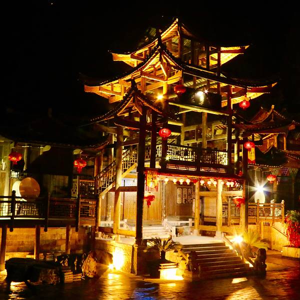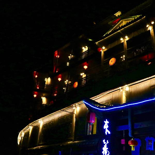 古镇内修建了八部大王庙、土司城、西秦会馆、摆手堂、观音阁、酉阳宫、衙院、考棚、书院、土家傩戏楼、织女楼等原汁原味的吊脚楼房屋,成为海内外游人领略酉阳悠久土家文化和浓郁民俗风情的窗口。虽然年关已过,但这里依然保留着幸福喜悦的装饰。多彩的灯光下,又无人显得格外安静。火红的大红灯笼从客栈这个角度看出去,酉州的南门还是灯火不熄的。我是一枚爱摄影,爱旅行、爱写下 展开