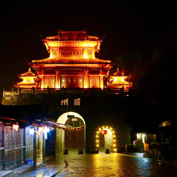 夜色下,欣赏着在灯火辉煌下的酉州古城的夜景,感受一下夜色下这座宁静的小城的繁华在全国对于古城的定义莫过于一座历史悠久的老城市了当我们提到古城的时候也许第一时间反应的可能就是丽江古城了。丽江古城是中国规模较大、最具地方文化特色代表的古城之一,所以它的地位还是非常显著的。然而,...在全国对于古城的定义莫过于一座历史悠久的老城市了当我们提到古城的时候也许第一时间反应的可能就是丽江古城了。丽江古城是中国规模较大、最具地方文化特色代表的古城之一,所以它的地位还是非常显著的。然而,有时候很多古城并非像丽江古城那样的规模,但是它们却有着非常浓厚的土著历史文化特色。一座非常非常小的古城里囊括了这个民族所有的人文、历史、习俗以及亲情等。这样的古城也许为数不多,重庆市酉阳县境内的酉州古城就是这为数不多的古城之中的典型代表。酉州古城是一座只有1300多米长的街道组合而成的。第一次来到这座酉州古城的时候给人的印象不是古城而是一条古街道,确实如此。虽然这是一条由几百米建成的古城,但是它有着上千年的历史积淀,还是土家族的“清明上河图”。