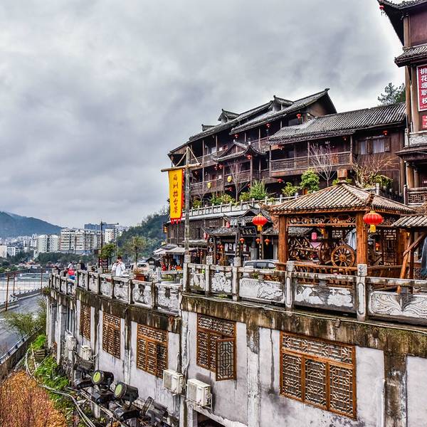 依山傍水风景优美,空气清新宜人。值得一去酉州古城位于重庆市酉阳县桃花源景区,这里有很多吊脚楼,是一条民族风情街,主要是集苗族土家族建筑、民族风情一体。依山傍水风景优美,空气清新宜人。值得一去!