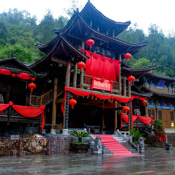 主要以土家族苗族文化为载体,集土家族苗族建筑、民俗风情于一体,是游人领略渝东南土家族苗族文化的...下午四点到到达重庆市酉阳县城,入住酉阳县桃花大酒店,房价140元/间,条件很好,值得推荐。酒店就在桃花源景区附近。办理好住宿手续,我们去附近的酉州古城转了转,有点小雨,古城很冷清,基本上没有什么人。