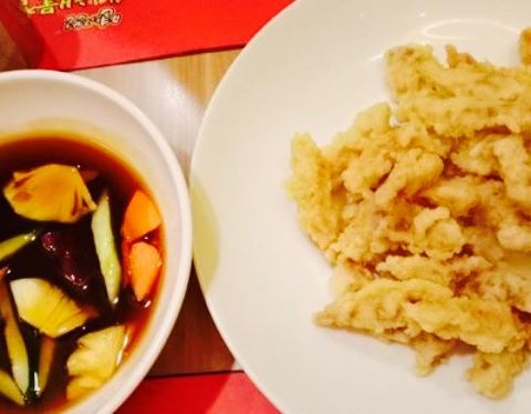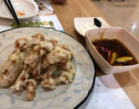 没想到这家韩国料理店的面条做的很不错哦,要的是辣五花肉面条,里面还有海鲜哦,那个炸酥肉做的不错,类似于东北的锅包肉不加酱汁。