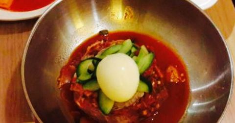 这次是四个人一起来这家餐厅用餐的,所有人都很喜欢菜单上的美食。我最喜欢的食物当然是凉面了,因为不仅给顾客提供了一些酱油和牛肉片,而且还有半个鸡蛋在上面。我很喜欢面条的质地,每一口都很有弹性。