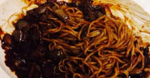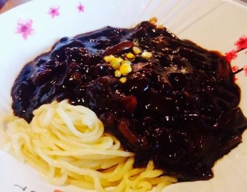 特色韩式炸酱面,黑色的酱料,味道很棒。