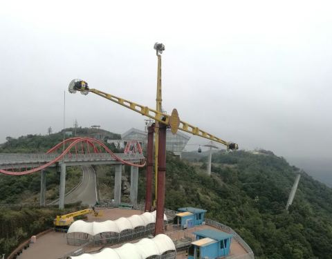 山顶的云霄飞轮特别刺激海拔480米, 是总览东部华侨城的至佳观景台, 包括拥有亚洲唯一云上山顶极速转轮的云霄飞轮索道上山顶,云海高地。山顶的云霄飞轮特别刺激。