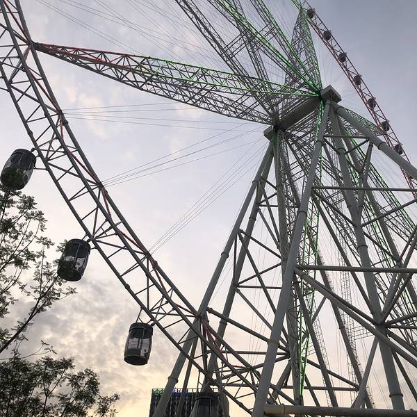 金骆驼 门票200块钱,不便宜,如果项目没有都开的话,不算划算。【门票】进来就是一个超级大的摩天轮上一次去游乐场还是10几年前去的大连的发现王国,年龄大了之后,就再也没去过游乐场了。
