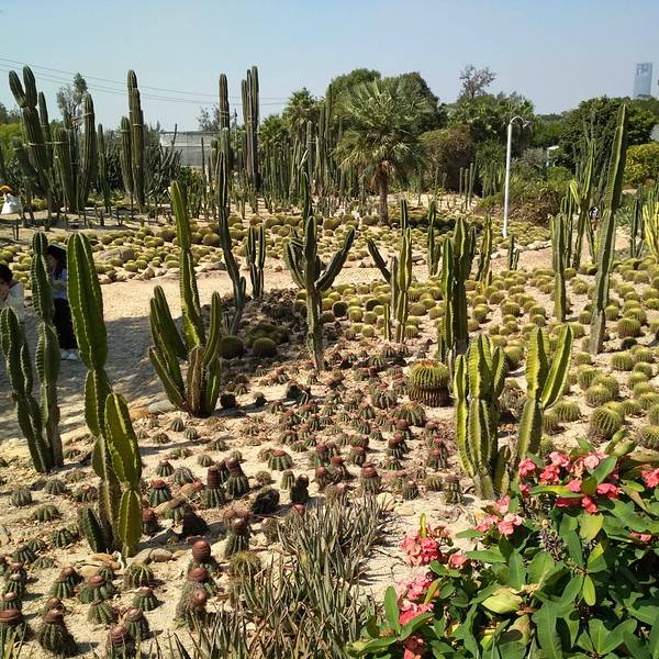 厦门园林植物园沙生植物区包括中国最大的仙人掌园,分室外展区和展览温室两大部分厦门园林植物园沙生植物区包括中国最大的仙人掌园,分室外展区和展览温室两大部分。室内展区包括国内自行栽培的最大的金琥王,罕见的金刺般若等。