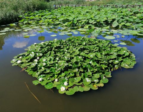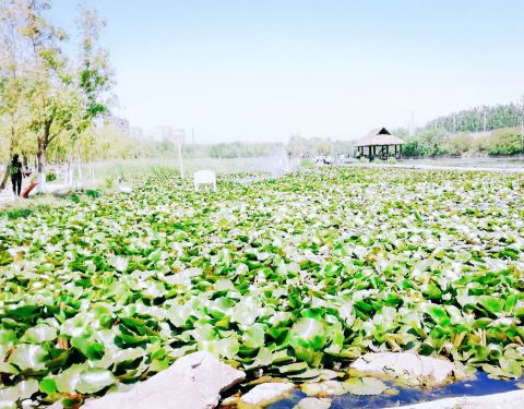 ...荷花、有野鸭、有金鱼,有木栈道、还有小木船,处处都是好风景,搭帐篷的很多,休闲游玩拍照的好去处