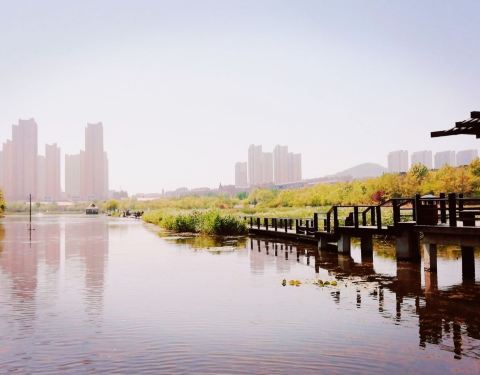 值得一看,很美的地方!从大连火车站坐1路公交车到三道沟换乘42路,在福佳西门下车就到了。城市里的湿地公园,大片的水塘,水塘里有芦苇、有荷花、有野鸭、有金鱼,有木栈道、还有小木船,处处都是好风景,搭帐篷...