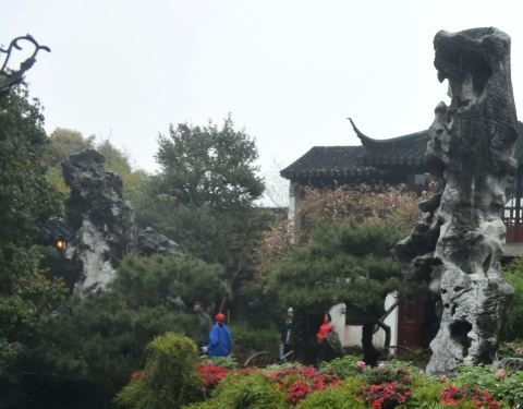 最后发现原来是一块太湖奇石。本以为是一座山峰,至少应该是一个土丘吧。也是留园内名石之一本以为是一座山峰,至少应该是一个土丘吧。找了半天也没找到。最后发现原来是一块太湖奇石。也是留园内名石之一。因其形态也称为观音峰。