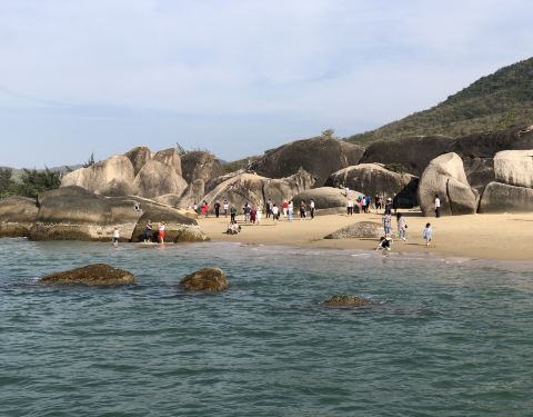 景区很美,去的时候天很蓝,海水也清澈,许多人来度假,可以在沙滩上晒晒日光浴,或则玩玩水都是不错的选择