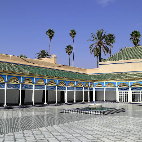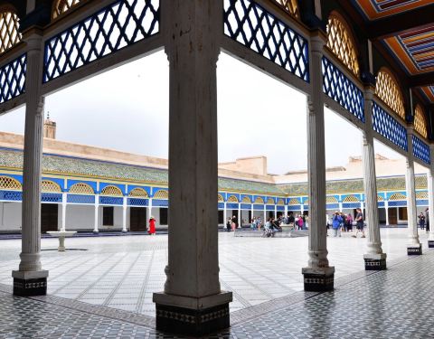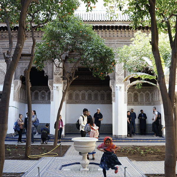 作为四大皇城之一的Marrakech,自然遗留下了多处历代的宫殿,而摩洛哥唯一对外开放的王宫便是这座巴伊亚。王宫的英译Bahia Palace中,Bahia意为智慧,据说这里是19世纪末的一位国家首相花重金建筑而成的。