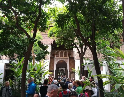 虽然不是旺季,但这景点也是标志性,所以游客还挺多的,大场景想没人需要等久一点,在瓷砖或通道拍照还不错19年2月去,去的时候里面某些地方在装修。门口有超级多的橙子树,工人正在摇树,满地橙子游客可以随手拣(摩洛哥的橙子可真是随处可见)。