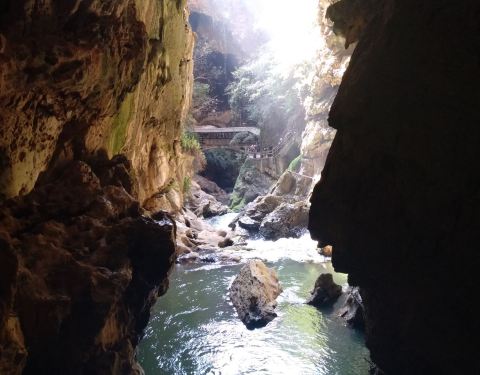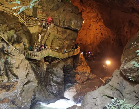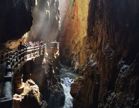 这里的景色很美,有点类似于重庆五隆的天坑地缝这里的景色很美,有点类似于重庆五隆的天坑地缝。整个旅行的一大部分都是在峡谷山洞中穿行,溶洞的规模和全国其他知名的地方比小的可怜,但峡谷很美,值得一去。