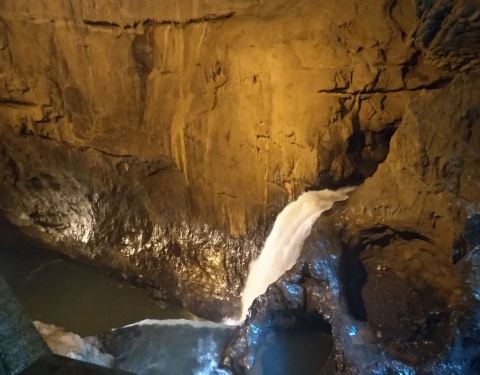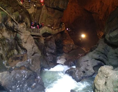 ...雄飞瀑则是其中一绝,地下暗河从高处轰然而下,形成了奇特的地下瀑布,水花飞溅,水声震耳,叹为观止大自然的鬼斧神工,造就了九乡溶洞奇绝的景观,雌雄飞瀑则是其中一绝,地下暗河从高处轰然而下,形成了奇特的地下瀑布,水花飞溅,水声震耳,叹为观止。
