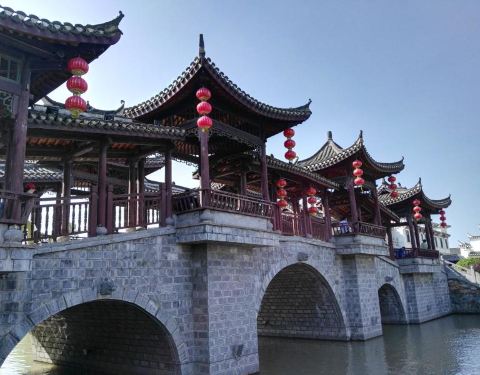 游览拍照最好的时间是早晨9点之前,此时游客相对较少鹊渚廊桥,位于小南河外河上,因三河古称鹊渚而得名,距今已有1500多年历史,是三河最古老的桥,1982年重建。 廊桥上有由12根立柱撑起的两层飞檐翘角式的长亭,桥两边建有美人靠,供游人在桥上观景。桥两头装有4...鹊渚廊桥,位于小南河外河上,因三河古称鹊渚而得名,距今已有1500多年历史,是三河最古老的桥,1982年重建。 廊桥上有由12根立柱撑起的两层飞檐翘角式的长亭,桥两边建有美人靠,供游人在桥上观景。桥两头装有4根四方青石灯柱,外国人称廊桥为情人桥,有情人若从这座桥走过,爱情定会天长地久。游览拍照最好的时间是早晨9点之前,此时游客相对较少。 展开
