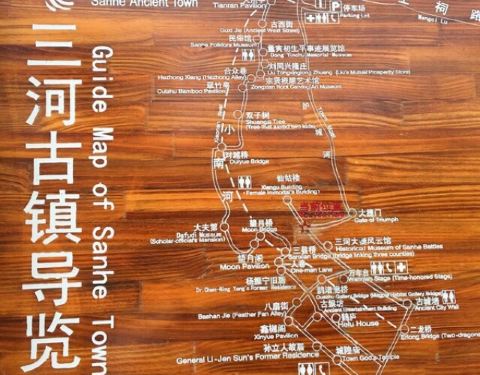 在三河古镇内,步行前往。