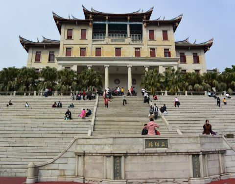 厦门大学标志性建筑之一。建筑精细巧妙,张灯结彩,垂珠彩帘,博采众长,结合了古今、中外的建筑特色厦门大学标志性建筑之一。建筑精细巧妙,张灯结彩,垂珠彩帘,博采众长,结合了古今、中外的建筑特色。通常只有重要的活动才在这里举行。