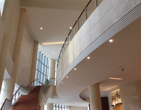 青海大剧院坐落于海湖新区,与万达广场、新华联广场呈品字型排列,三者相距又很近。大剧院举行各类演出、会议,这次就是参加会议有幸进去参与了一下。观众席有上下两层,约千余个座位,厅不算太大,空调很暖。大剧院的招牌不亮,几个大字同墙色接近,不易看出。
