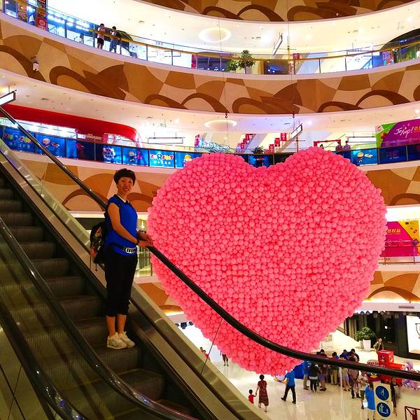 从海边回来,在大悦城下车,闲逛了一会,就去楼上看看有没有好吃的,当地的美食当然是鲁菜了,各种饺子、海鲜等,好吃还不贵。饭后步行回酒店休息。大悦城夜景商场内的气球装饰很温馨大悦城