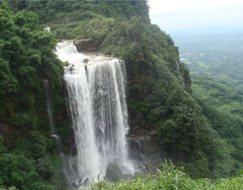 晴天中午,阳光透过水雾便折射出七色光环,形成斑斓缤纷的彩虹,七彩飞瀑也由此而得名七彩飞瀑是从竹海深处流出的水潦河,在回龙桥下跌向深谷而形成的。晴天中午,阳光透过水雾便折射出七色光环,形成斑斓缤纷的彩虹,七彩飞瀑也由此而得名。