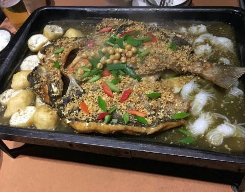菜的口味融合了本地特色和泰式风味。爱吃鱼江景餐厅,景色不错,停车方便,看夜景很合适。还算可以