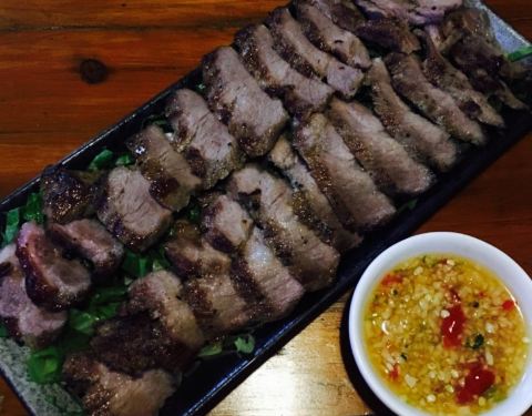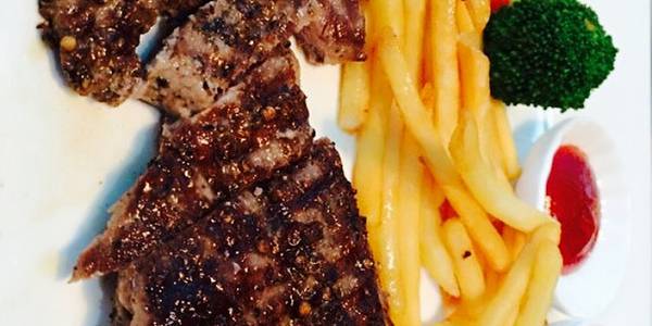 不愧为网友攻略第一高分店,果然好选择。之所以点了两份牛扒,是因为不想吃泰国菜。肉眼扒,五成熟做的刚刚好,十分用心,外边的培根都很入味。强烈推荐一试。西冷扒,也是五成熟,刚刚好,很嫩,唯一美中不足是筋...不愧为网友攻略第一高分店,果然好选择。之所以点了两份牛扒,是因为不想吃泰国菜。肉眼扒,五成熟做的刚刚好,十分用心,外边的培根都很入味。强烈推荐一试。西冷扒,也是五成熟,刚刚好,很嫩,唯一美中不足是筋稍多。连薯条都好鲜美,哈哈哈。点了mojito,是这几天以来水准最高的。服务也很好。五星好评。