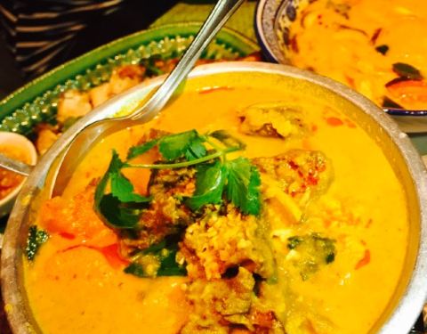 特意找到这家店的,整体来说蛮正宗的泰国菜。特别是看了满大街的啤酒鱼招牌和吃过啤酒鱼之后过来吃感觉非常鲜美。猪颈肉小孩子很开心,菠萝饭量有点少了。店环境有特点,就是刚进入觉得有些昏暗,不过过一会就适...