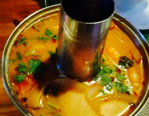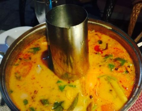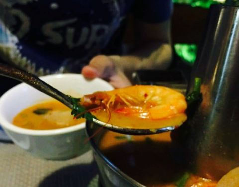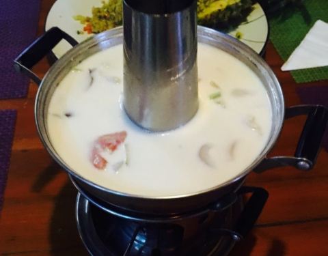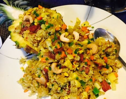 阳朔一家主打泰国菜的食堂,一个人点了一份冬阴功汤和菠萝炒饭,汤口味很浓郁,虾和贝壳比较清新,调料很齐全,接近地道泰国味道。炒饭量比较足,配料很丰富,口味口感都很不错,难道吃到比较可口的菠萝炒饭。服务特别热情周到,点个赞,餐具也不错,环境很棒,价廉物美。