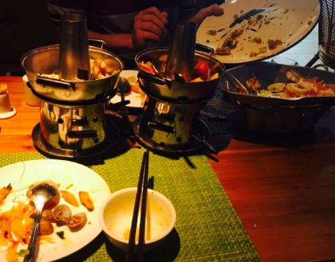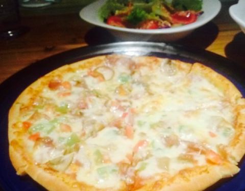 很安逸的吃饭环境,坐的露天座。冬阴功海鲜汤很正宗。西班牙色拉清爽,用于平衡汤的辣味。香辣牛肉披萨很填肚子,满足。重点表扬环境和服务。环境见图。服务自己去感受吧,清爽。