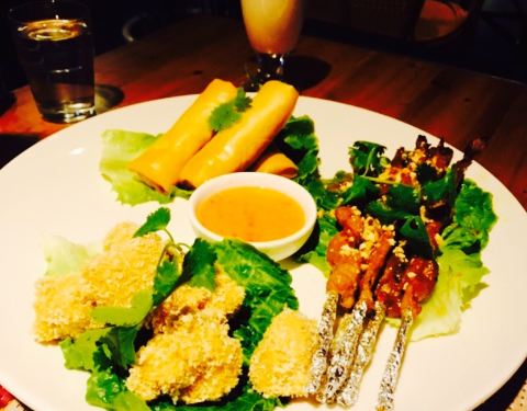 在周边一带评价数一数二的餐馆,周围绿树环绕很幽静,室内环境宽敞,灯光很暖人心,音乐也很不错。西餐和泰国菜的结合,菜品还是蛮丰富的,食物分量挺足的。