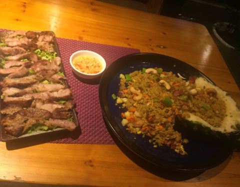 看着评价挺好的就找着去了,不知道是时间段的原因还是什么,就我一个顾客,点了个菠萝饭和猪颈肉、说是招牌菜,说实话,菠萝饭没什么特别的味道,猪颈肉没吃完,感觉还行吧!两个总共100左右好像。