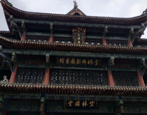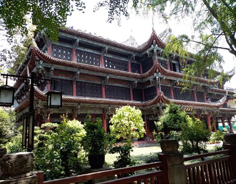 进了文殊院大门,穿过各个大殿,到了最后面,就可以看见新建的藏经阁。藏经阁有四层左右,有听讲座的地方,也有看书的地方。很幽静。