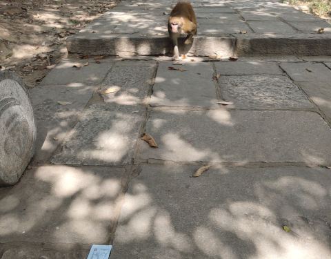 除此之外可以在徒步走2-3分钟到达最高点,中途有个小八卦亭,最高点有堆砌的大石头,可以爬上去看看风景为了节流开支,我们选择直接到玉女峰,这样下山的时候我们可以走到水帘洞,再走乘车回到山下只需要15元/人,一路精打细算完成我们赏猴的愿景。花果山风景尚可,弯弯曲曲的道路可能也只有工作人员能那么顺溜的开上...为了节流开支,我们选择直接到玉女峰,这样下山的时候我们可以走到水帘洞,再走乘车回到山下只需要15元/人,一路精打细算完成我们赏猴的愿景。花果山风景尚可,弯弯曲曲的道路可能也只有工作人员能那么顺溜的开上来了,玉女峰顶有个玉女像,除此之外可以在徒步走2-3分钟到达最高点,中途有个小八卦亭,最高点有堆砌的大石头,可以爬上去看看风景。高耸入云的山峰,站在上面放眼望去仿佛一片大好河山在朕脚下!!hahahaha^^顺势楼梯往下走,迎接我们的正是花果上的大王们,说真的 冷不丁的窜出一只猴子,还真的有点怕怕~这些小猴子贼精,看准了自己的东西就会抢,哎呦喂惊到我了!冒着生死的危险,拿着手机拍视频,真的怕它一下子就窜到我的手上抢走我的一个“肾”! 展开