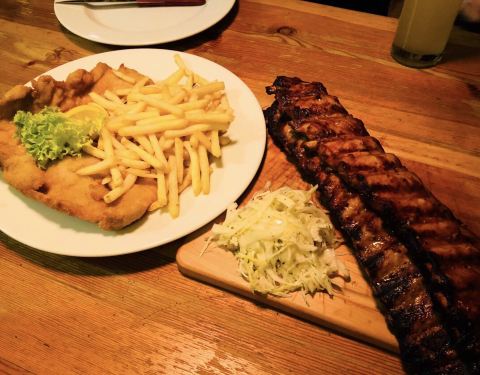很好吃!分量基本上是我们俩口的量了!价格便宜,一份烤排骨套餐16.9欧元!装修古朴,有意思!如果不是正常的饭点用餐还可以,否则必须预定!