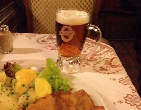 这是一家传统的奥地利菜饭店,里面的猪排做的还不错,牛排配薯条基本上就是主食,不过牛排很小,薯条比较多,欧洲北部基本都这么吃。
