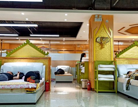 就是一个旅行团的购物点,不值得过来浪费时间。里面分三层,进去之后有讲解员带领参观推销橡胶床垫,会跟你说很多很多,然后让你躺在他们的橡胶床上体验,质量好但是非常贵,完整的一套都要上万,馆里有WiFi,躺床上休息一下倒还可以。