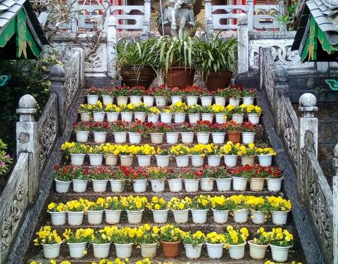 四季皆宜,秋冬最佳,杜鹃和梅花齐开。