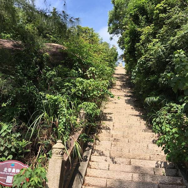 伶仃湾上,一桥飞架,仿如霓虹飞卧碧波之上,气势磅薄。伶仃广场等着民宿小哥来接我们去酒店,我们到的时候正是最晒的时候。(正午十二点钟)沿着石碑直走就到邮局了,可以寄明信片。走大概六七分钟就到集市了,往左边走就是海鲜市场和沙滩了,往右边走就是往伶仃山的1号绿道路线。我们先回民宿休息到三点半左右才去爬山的,实在是太晒了。。。伶峰揽胜据说这是以前打仗时期留下来的营房对面就是香港了这99个台阶爬上去就可以看到“北帝晨钟”了,考虑到实在太陡了,所以下山的时候我们才走下来北帝,亦称玄武帝,为管水之神,坐于伶仃峰半山瑞气缭绕之间,像高8米,威风凛凛,福佑万民,为各方游客相朝拜之所。像旁巨钟,一声撼十里。