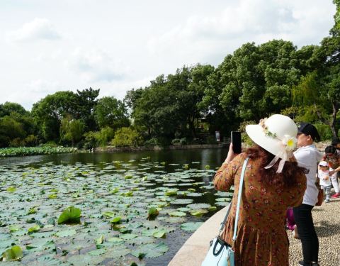不过蠡园内荷花开的很灿烂,荷花,荷叶,莲蓬,湖水,组成了一副美景。不错蠡园内,估计去的时机不对,百花山房没有啥可以看的。不过蠡园内荷花开的很灿烂,荷花,荷叶,莲蓬,湖水,组成了一副美景。不错。
