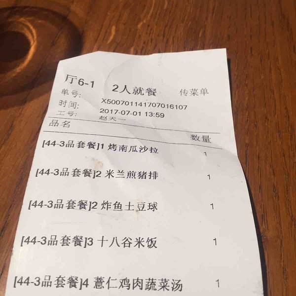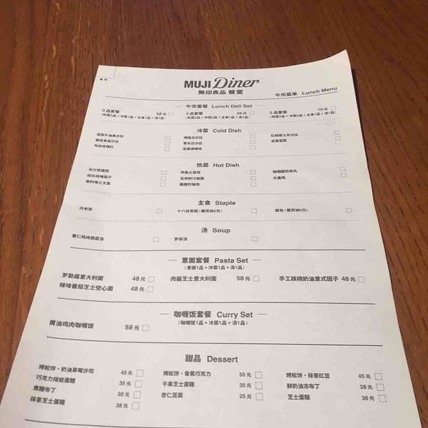 在淮海路百美汇看完电影,本来想去吃面的,路过MUJI,临时改主意想去试试新开的MUJI DINNER.结果发现是个错误的选择。一点半到的,拿号排队半小时,只有套餐可以点,等餐20分钟,饿的饥肠辘辘。意面太咸,在米兰吃过正宗炸猪排的我表示这个猪排不好吃。据说晚餐单点口味还可以。服务也不行,我都是自己去倒水喝的。