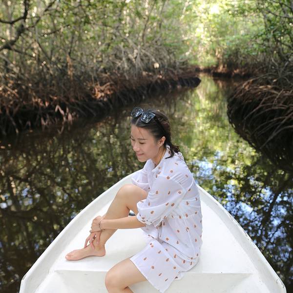 蓝梦岛上有一片很大的红树林,位于岛上的东北部,红树林的入口在岛的最北部。开摩托车到红树林入口处,就能看到很多小船停泊在岸边,选择的时候多问几家比比价。 比起那种带马达的船,我更喜欢这种人工撑的小木船,慢慢的,无声的,静谧的。