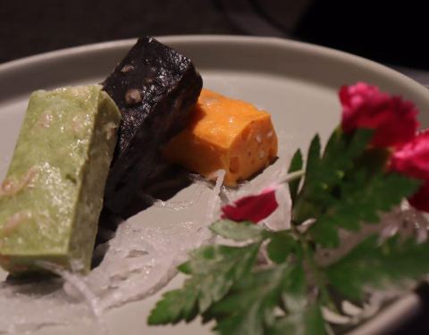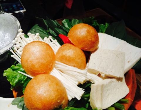 兴奋地站起来 羊羔肉卷一烫就好 吃起来特别轻快 研磨豆腐 表面稍硬中间稍嫩 豆香味也比较足 酱爆虾球